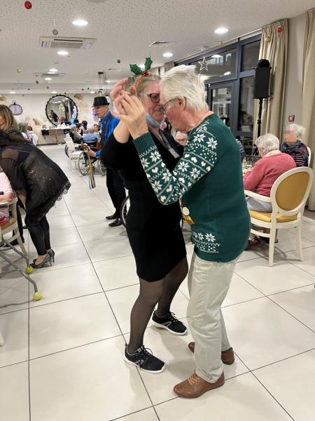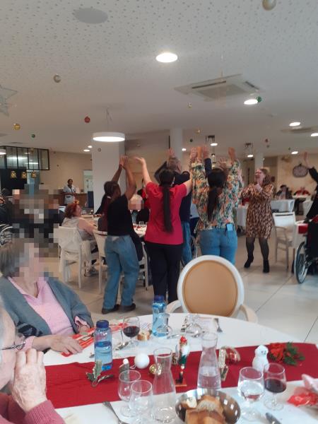 Le 25 décembre, jour de Noël, un déjeuner copieux a été servi, mettant en avant le savoir faire du personnel de cuisine. L'équipe pluridisciplinaire a dansé sur des airs festifs et des résidents les ont rejoint sur la piste de danse.