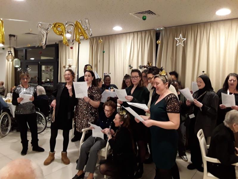 Le 31 décembre et 1er Janvier, l'équipe pluridisciplinaire était présente aux côtés des résidents pour fêter l'arrivée de la nouvelle année! Tous ensemble, nous avons chanté une chanson de la Troupe du Roi Soleil "...Tant qu'on rêve encore, Que nos yeux s'étonnent encore, Rien n'est perdu..." puis avons dansé sur des airs endiablés!